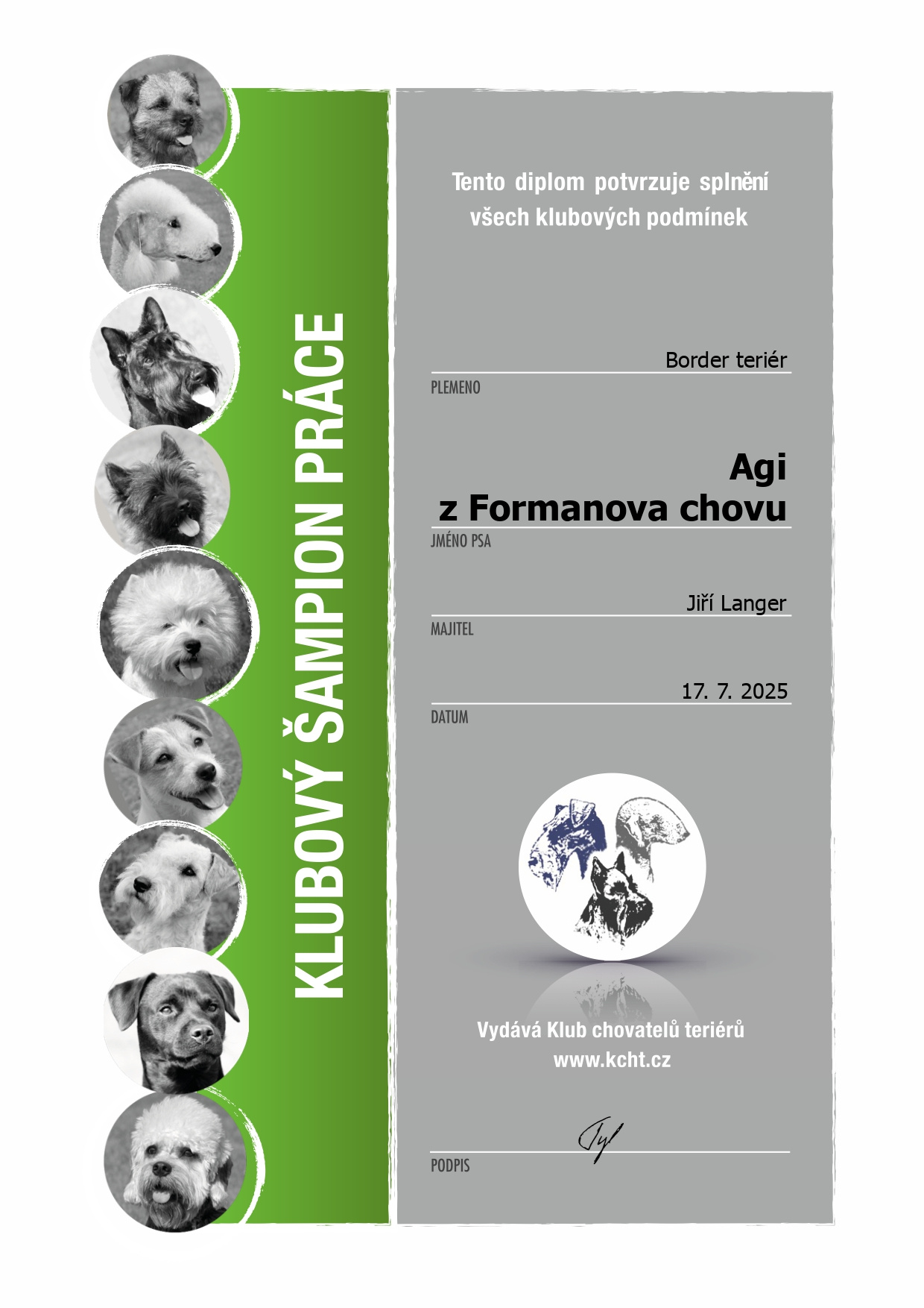 | 17.07.2025 | Klubový šampion práce KCHT | 🏆 |