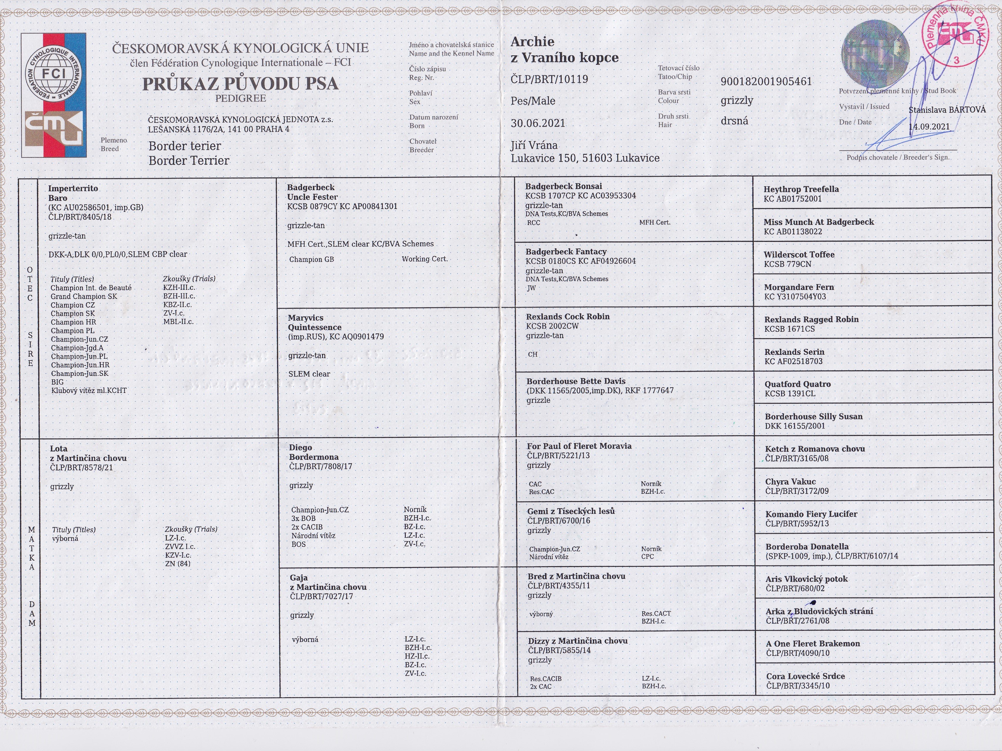 | 28.08.2022 | Krajská klubová Brno/CZ | Alena Auerbach/CZ | mladých | V1, Vítěz třídy, CCJ /4 b. |
