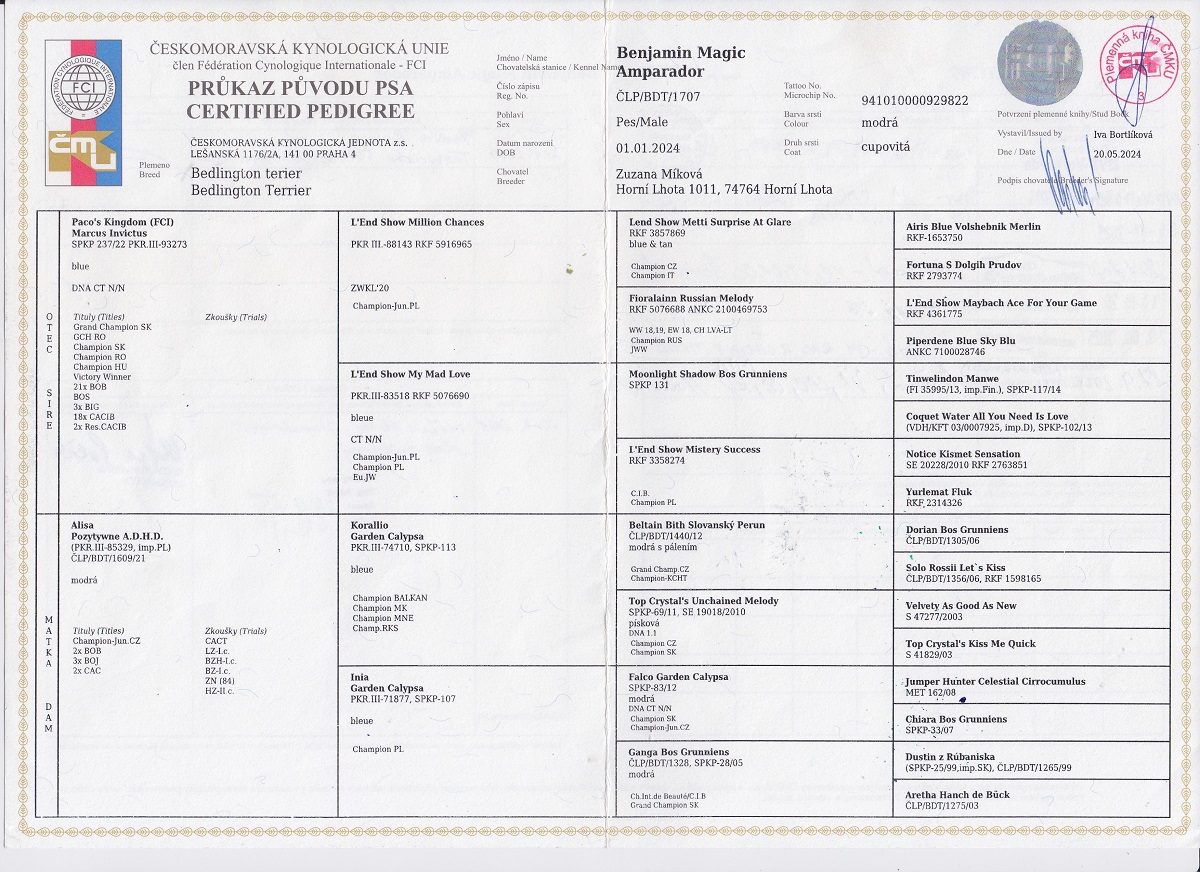 | 21.06.2025 | Mezinárodní (CACIB) Brno/ | Viktorija Lozić/SK | mezitřída | V1, CAC, res. CACIB /5 b. |