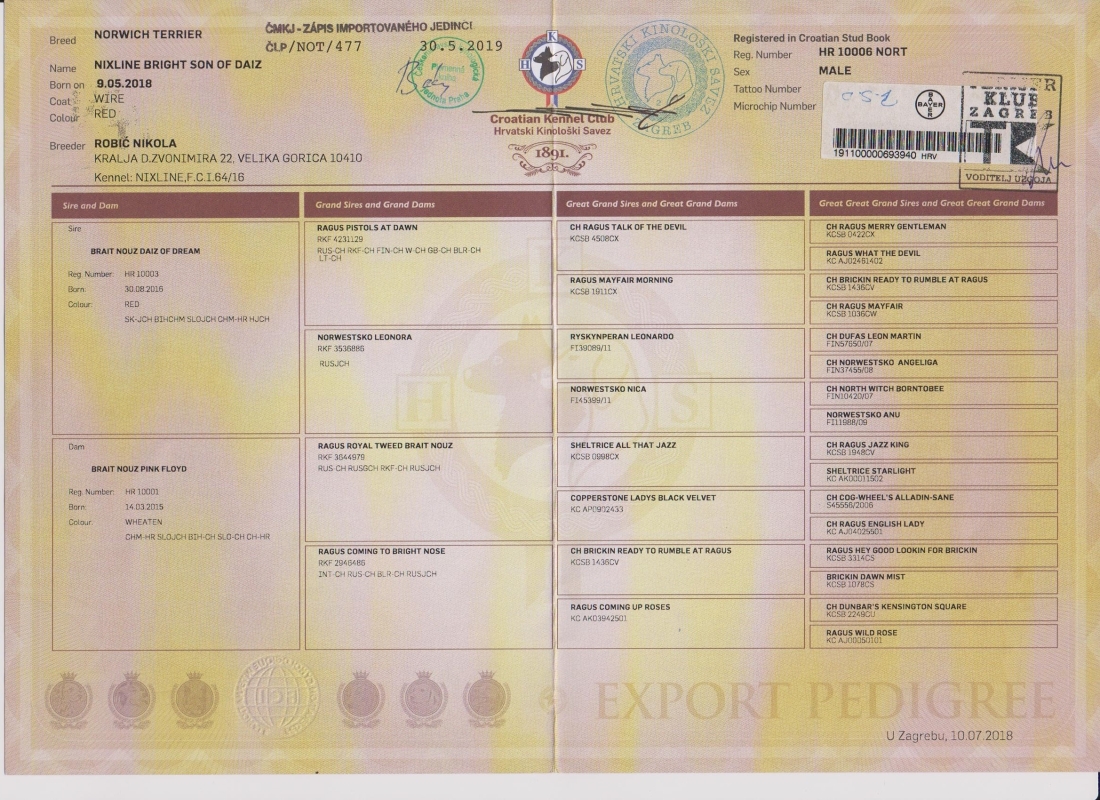 | 26.06.2021 | Mezinárodní (CACIB) Brno/CZ | Gabriela Štursová/CZ | šampionů | V1, CAC, CACIB, BOB /10 b. |