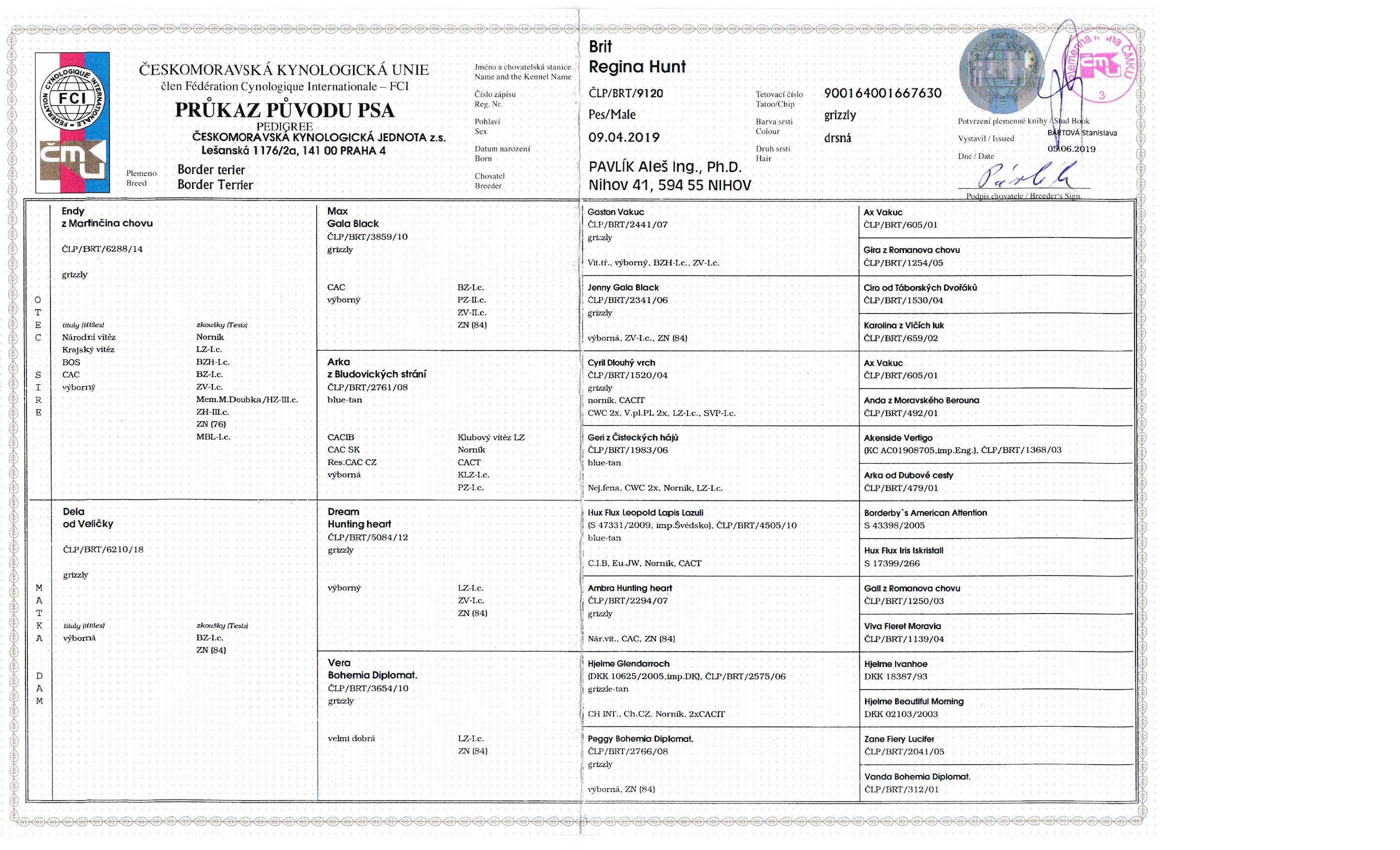 ZN, ZV I.c,BZ I.c,LZ I.c,LZ I.c,BZ I.c, CACT,MSBLT I.c/II.c titul NORNÍK, PZ I.c, BZH I.c, VZ III.c U- VŠESTRANNÝ PES