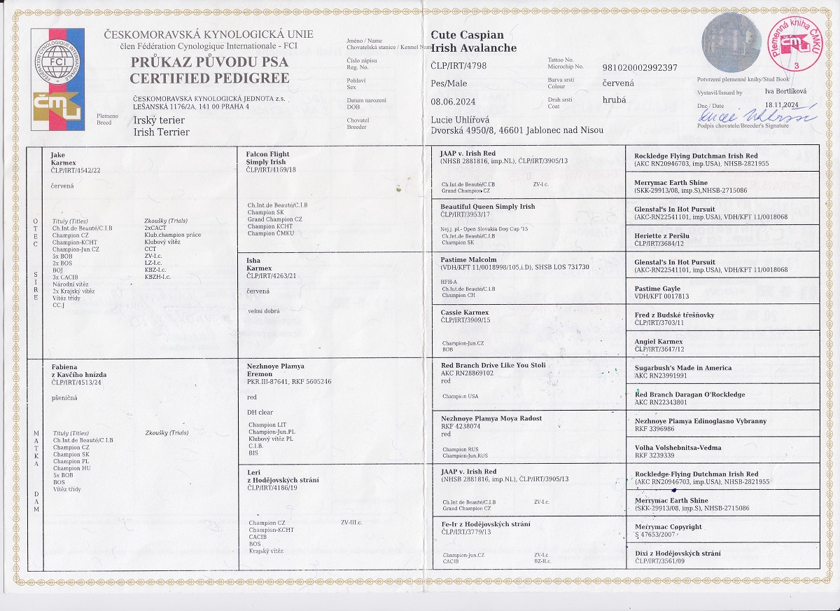 výborný, 3x CAJC,4 x CACIB-J, CACIB, 3x BOJ, CACIB, BOS,3x BOB, JCH CZ