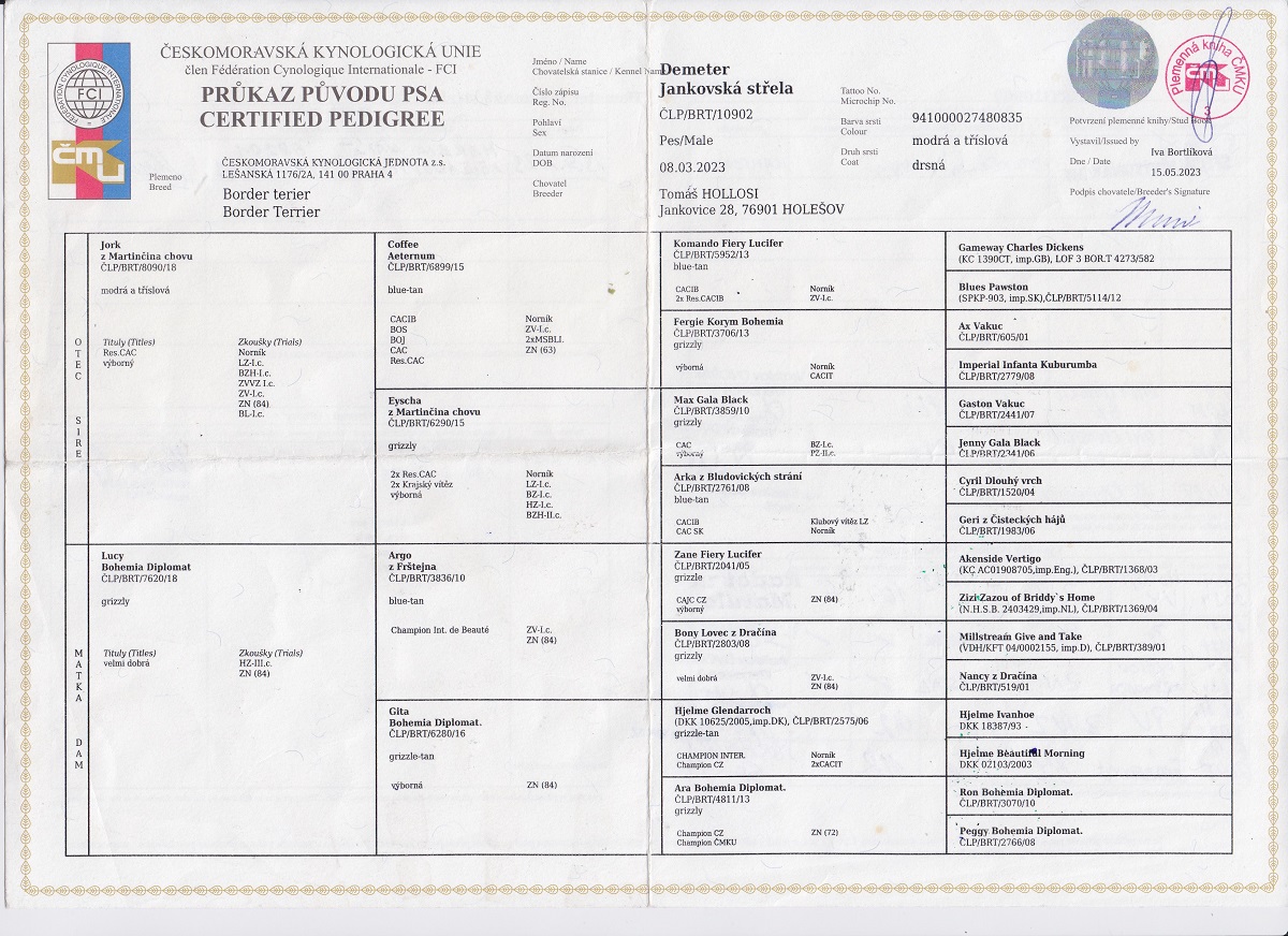| Datum | Výstava | Rozhodčí | Třída | Ocenění |