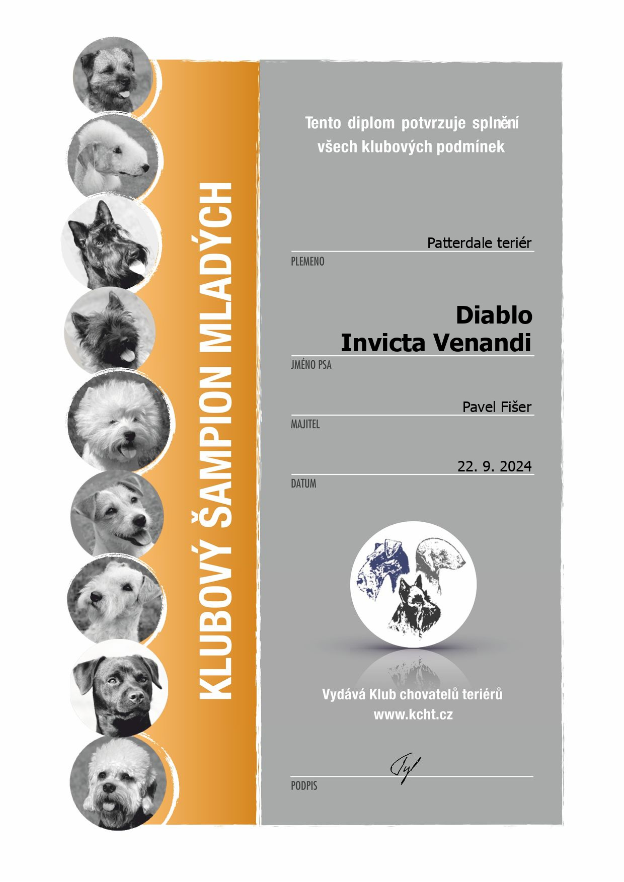 | 22.09.2024 | Klubová s KV České Budějovice/CZ | Peter Miller/AUS | mladých | V1, CAJC, CCJ, Klubový vítěz mladých, BOJ /6 b. |