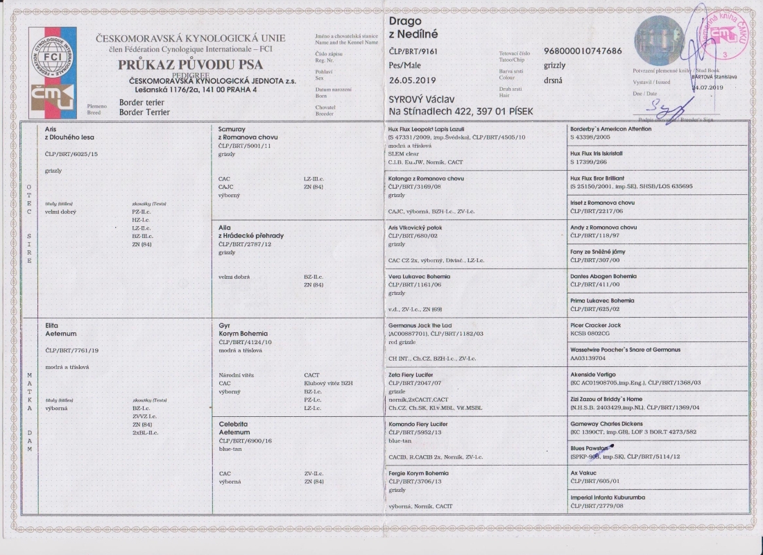 | Datum | Výstava | Rozhodčí | Třída | Ocenění |