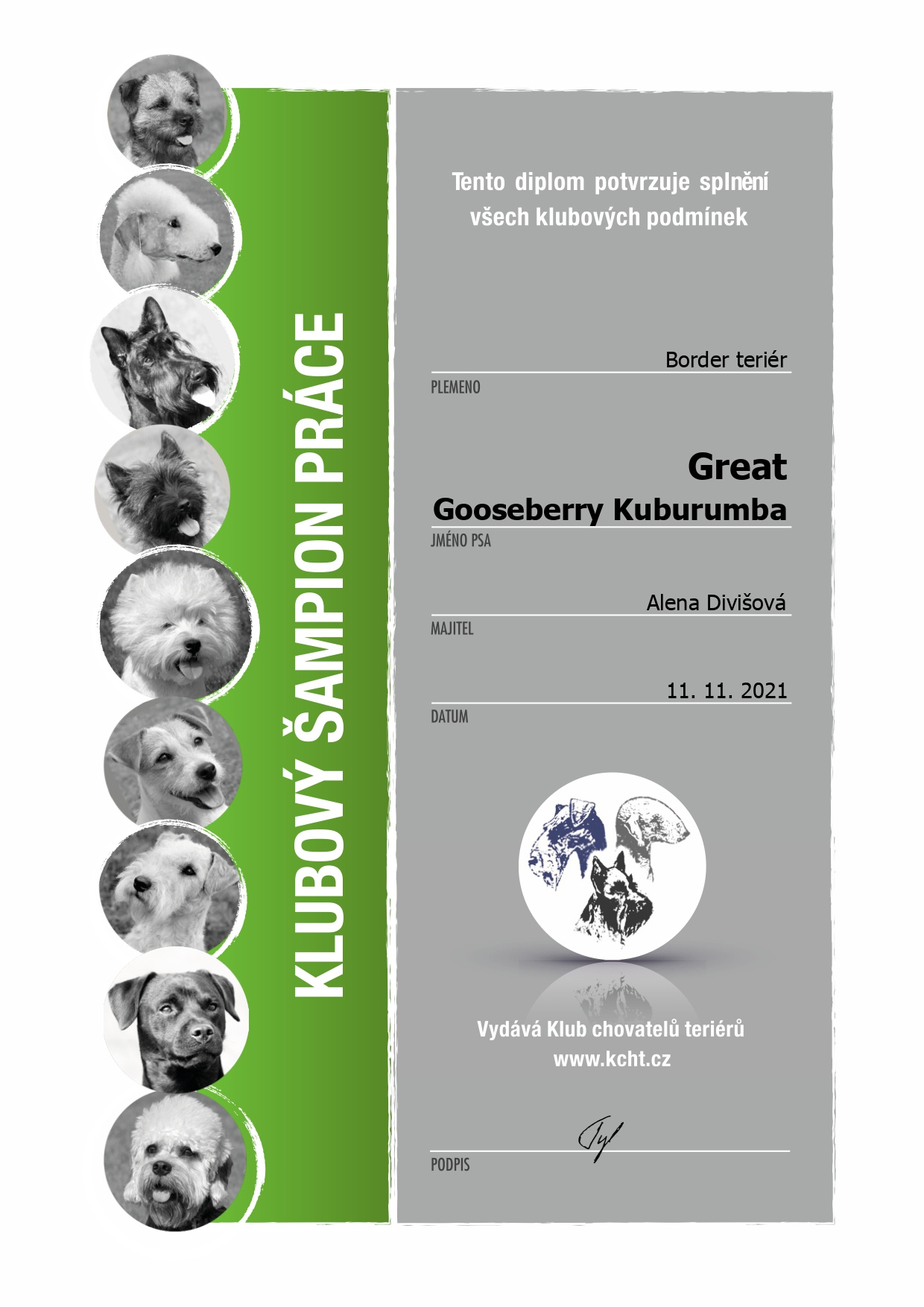 | 31.12.2025 | Nejlepší teriér KCHT/CZ | Krása | 5. místo /35 b. | |