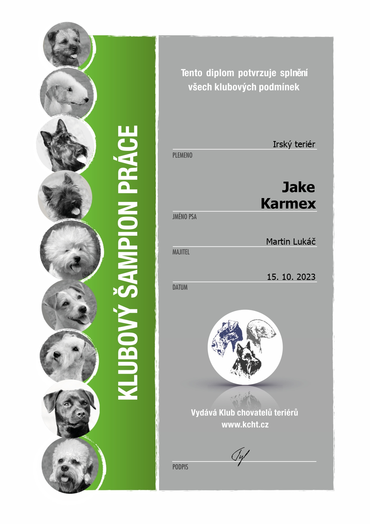 výborný, Vítěz třídy, CCJ, JCH CZ, CH CZ, CH KCHT, CH práce KCHT