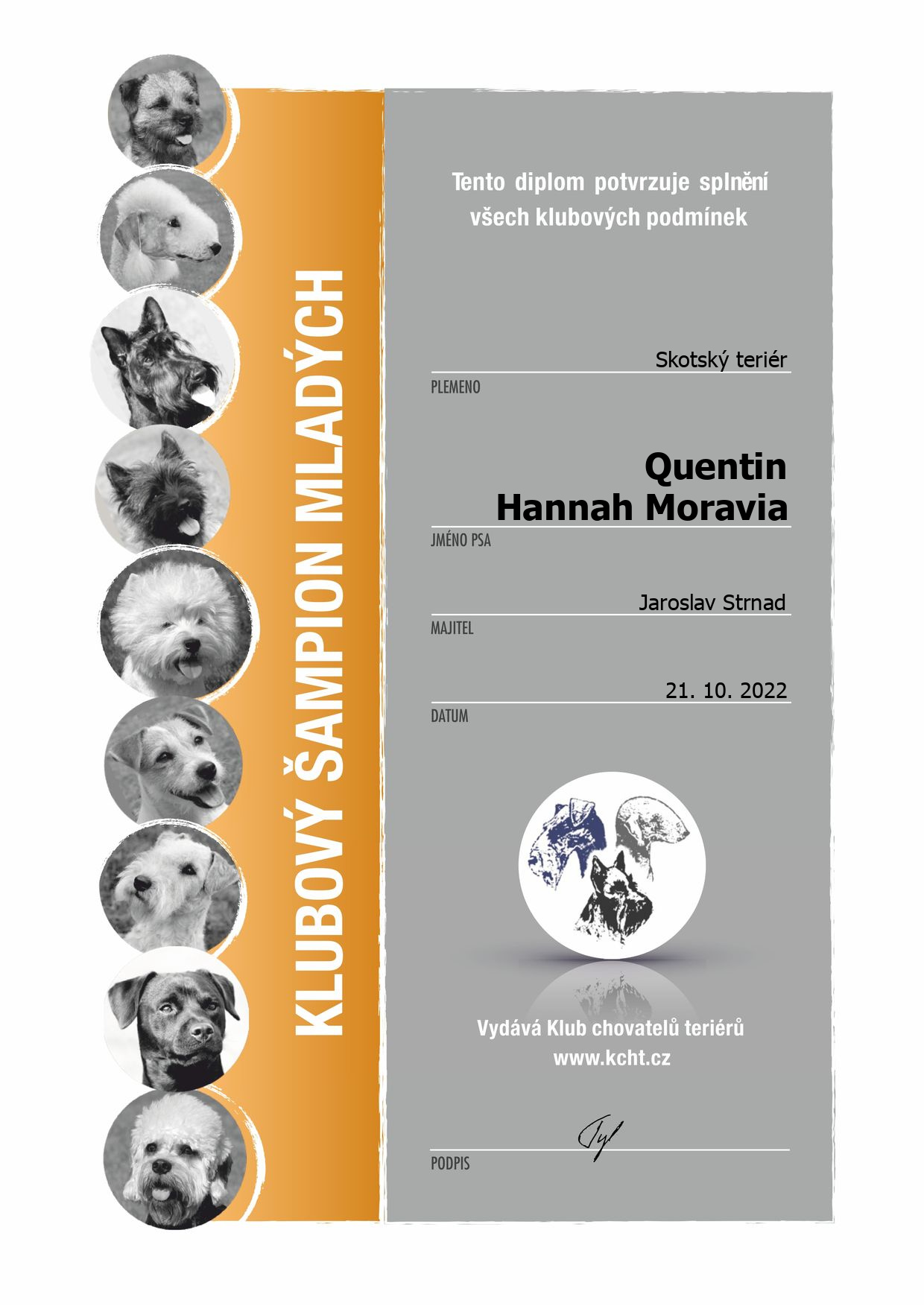 | 31.12.2022 | Nejlepší teriér KCHT/CZ | Krása | 3. místo | |