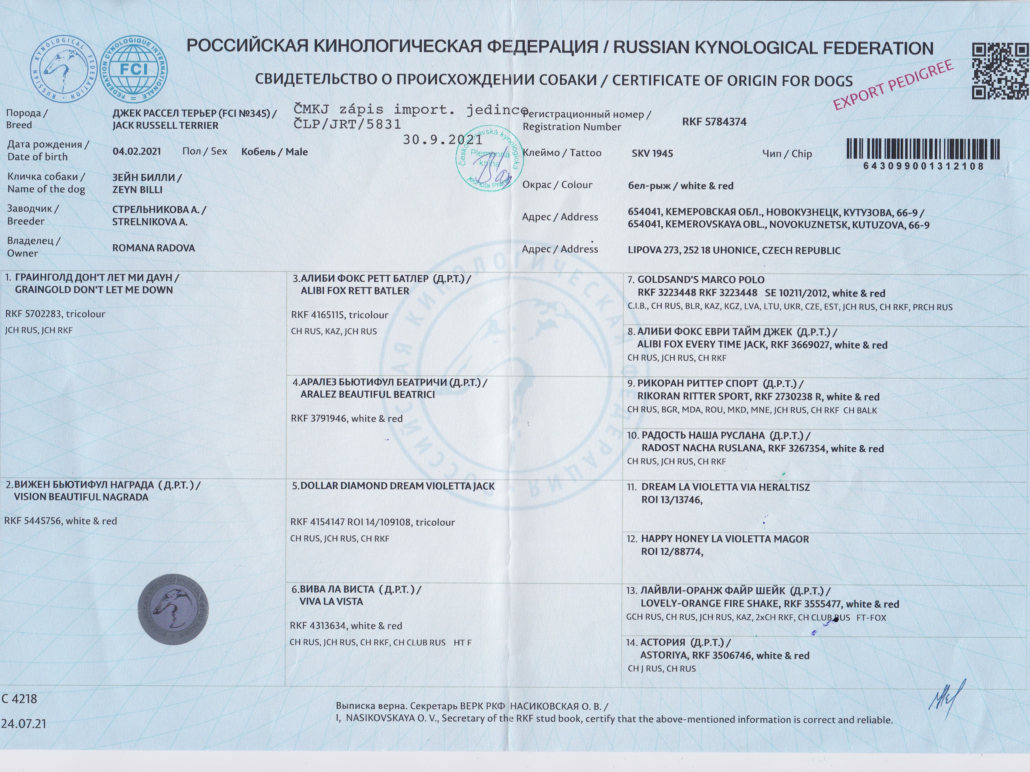 | 05.02.2022 | Mezinárodní (CACIB) Brno/CZ | Csaba Denk/H | mladých | V2 |